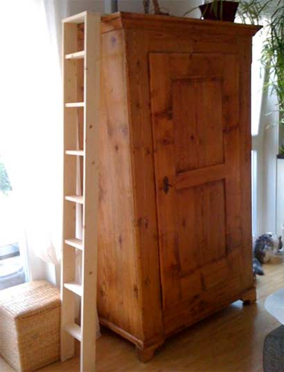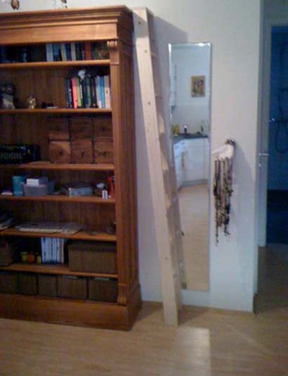 Mein Dosenöffner findet Katzenbäume hässlich und hat deswegen 2 Leitern anfertigen lassen. Nette Idee, bin aber viel zu träge zum klettern ….