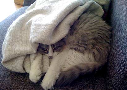 Die gute Nachricht: Caline ist kein wenig verschüchtert. Auf der Herfahrt hat sie selig geschlummert, ich hatte noch nie eine Katze im Auto die dermaßen entspannt war.