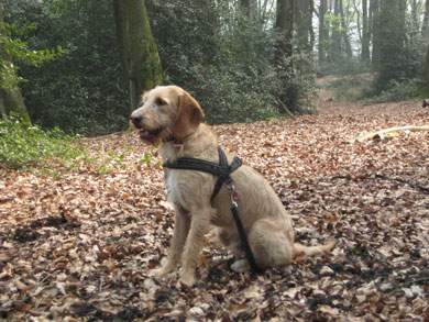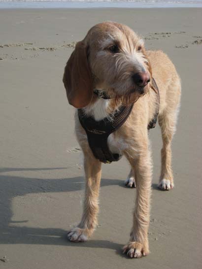Er geht übrigens sehr artig an der Leine. Er zieht nicht