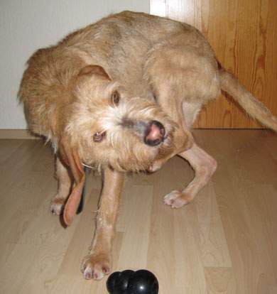 Ihm angebotene Spielzeuge und Kauknochen sind für relativ