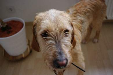 Leckerli drin ist... vor lauter Eifer übersieht er es fast