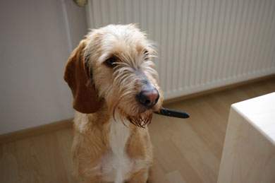 Caramel trägt nun auch eine Hundemarke. Jetzt warten wir