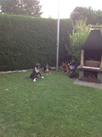 Caruso ist jetzt schon ein richtig grosser geworden. Er ist gegenüber anderen Menschen sehr ruhig und Offen. Trotzdem hat er sehr viel Power, die jeden Tag abgebaut werden will. Also haben auch wir jeden tag unser Fitnessprogramm mit Gesellschaft auf 4 Pfoten. Wir haben regelmässig Ferienhunde. Das Intressante ist dass jeder noch so rüpelhafte Artgenosse nach einer Stunde mit Caruso zu einem Angenehmen Begleiter wird. Caruso hat ein enormes Gespür für Hund und Mensch. So liegt es nahe das Er zu meinem Assistent in meiner Hundeschule wird, und man vergesse nicht das er noch nicht mal 1 Jahr alt ist. Einfach ein Ausnahmetalent.