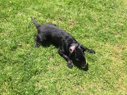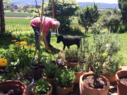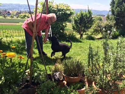 Champion hatte Besuch erhalten. Er ist verspielt, verschmust, souverän und heiss geliebt. Rührend wie mir sein Meister Teddy gleich sagte, „ diesen Hund würde ich für kein Geld weggeben“….und Sie doppelte burschikos nach „Wir sind Chaoten, und dieser Hund passt zu uns“…. Alles ist absolut problemlos, ich wurde wieder mit meinen Hunden freundlichst begrüsst. 2 x wöchentlich kommt ein Dackel als Ferienhund, und die beiden freuen sich riesig sich wiederzusehen, liegen zusammen im Bettchen, spielen, machen die Wiese zum Acker und freuen sich ihres Lebens.