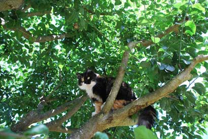 Hallo Frau Meyer, Charlotte, ist uns sehr ans Herz gewachsen und wir möchten sie nicht mehr missen. Ich bin, machdem ich Ihre Mail gelesen habe, in den Garten gelaufen und habe zwei Fotos geschossen. Sie sitzt auf den Fotos auf einem Ihrer Lieblingsplätze, dem Mirabellenbaum bei uns im Garten. Von dort aus kann sie so gut die Vögel belauern die zu uns in den Garten kommen um am Wasserstein zu trinken. Das sie unsere Häsin nicht jagen darf muss sie noch lernen. Habe mir extra eine Wasser- spritzpistole gekauft mit der sie nassgespritzt wird, wenn sie wieder einen Angriff startet. ( Der Hase darf bei schönem Wetter im Garten frei laufen, da alles umzäunt ist.) Aber das kriegen wir auch noch in den Griff! Mit unserer Nala versteht sie sich zum Glück auch gut. Sie akzeptiert die alte Dame als die Ranghöhere.