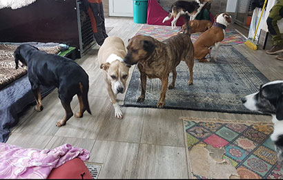 Charly begleitet mich auch immer zur Arbeit in der Hundepension. Mit den Arbeitskollegen/kolleginnen hat er sich schnell angefreundet. Ich weiß natürlich, dass er heimlich immer mal ein Leckerli abstaubt! Er begegnet auch auf Spaziergängen und zuhause fremden Menschen nun sehr freundlich und höflich.