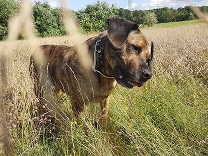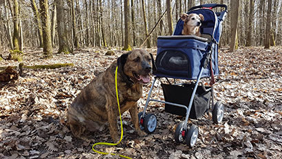 Die kleine Emeli ist leider im September 2021 gestorben. Sie wurde 14 Jahre alt. Als sie nicht mehr so fit war, haben wir einen hundebuggy mit auf die Spaziergänge genommen. Dann konnte sie auch auf grossen Touren immer dabei sein.