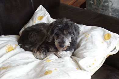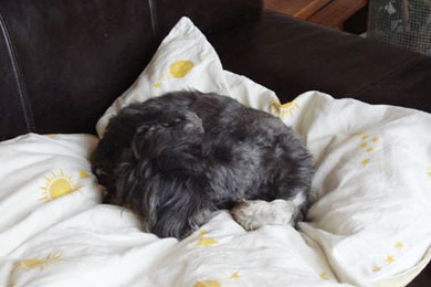 gerne am Polster am Sofa, meist legt sie sich zu meinem Tizian