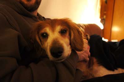 Zu den Fotos: das ist unser abendliches Ritual geworden, ausgestreckt, tief und fest schnarchend auf Herrchens Schoß.