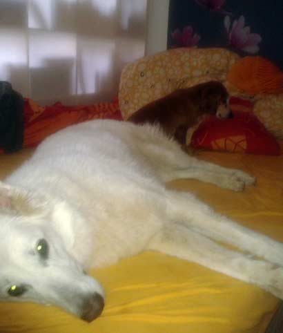Die zwei Hundedamen arrangieren sich auch immer besser miteinander. Viel zu erzählen gibt es von Mimi nicht, aber das ist ja immer besser als schlechte Nachrichten. Daher einfach nur ein paar Bilder von der hübschen Seniorin.