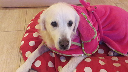 Ein paar Tage nach meinem Einzug war ich shoppen – ich hab sie alle um meine Pfoten gewickelt mit meinem Charme – zum guten Schluss habe ich ein total cooles Mäntelchen bekommen damit ich nicht mehr frieren muss.