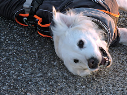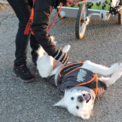 Ich fühle mich wie der Chef persönlich. Ab und an muss ich dann auch mal aussteigen und selber laufen. Meine Menschen sagen ich muss trainieren – was auch immer das ist – es scheint zu funktionieren, da ich schon viel besser zu Fuß bin. Vor ein paar Tagen war es früh morgens schon ziemlich hektisch.