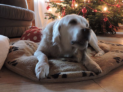 Dann wurde es komisch hier, es kam so ein komisches grünes Ding ins Zimmer, an dem hängen jetzt lauter so glitzernde Bälle. Das Beste daran war aber das da dann so Päckchen mit lauter duftenden Leckereien drunter lagen. Überhaupt habe ich in der kurzen Zeit in der ich jetzt hier lebe schon ganz viel erlebt.