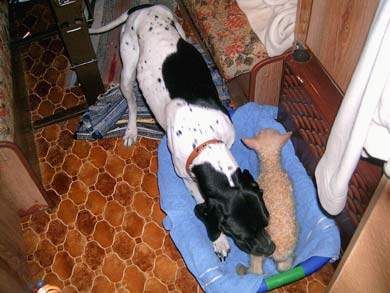 dann ganz vorsichtig an Wolfgang herangepirscht und geschnuppert.