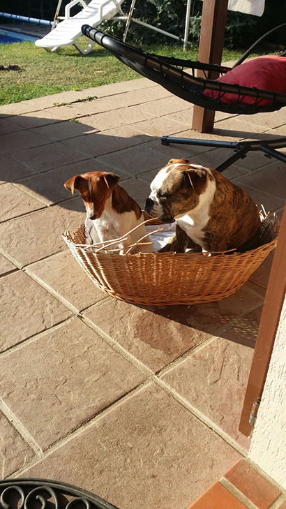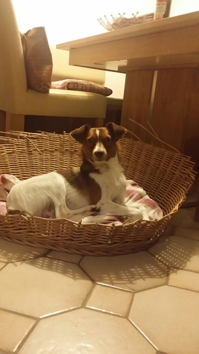 Verträglich mit seinen Artgenossen und sehr sozial auch mit Katzen. Dean geniesst gerne die Sonne und ist in keinerweise Futterneidisch mit senen Hundefreunden die immer wieder mal bei uns vorbeikommen.