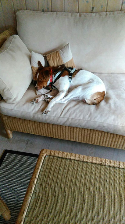 Dean grüßt aus seinem diesjährigen Sommerurlaub. Am Meer in Dänemark, nach langen oft windigen Spaziergängen mußte er natürlich auch ruhen ;)