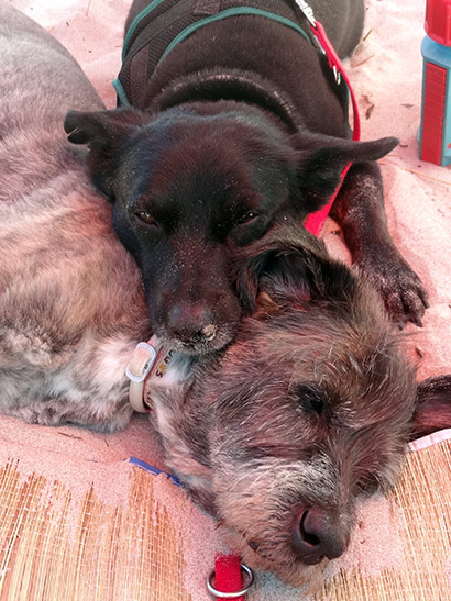 Wir durften mit Desiree und Clipper wunderschöne und sonnige Ferien auf Korsika geniessen. Desiree geht es blendend und sie hat die Ferien richtig genossen. Am Strand genoss sie ein Schläfchen und auf den Spaziergängen schnüffelte sie überall interessiert herum. Sie ist aufgedreht und fordert Clipper zum Spielen auf.