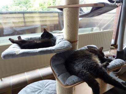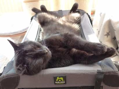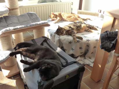 Das fanden unsere Katzen natürlich nicht so toll und haben schon mal den ein oder anderen Klaps auf den Hintern bekommen… Mittlerweile ist es so, dass man auch schon mal zusammen auf der Couch oder auf dem Bett in gebührendem Abstand liegen kann. Zwar gibt’s hier und da immernoch das ein oder andere fauchen oder das die Katzen sich durch die Gegend jagen, aber das ist ja normal.