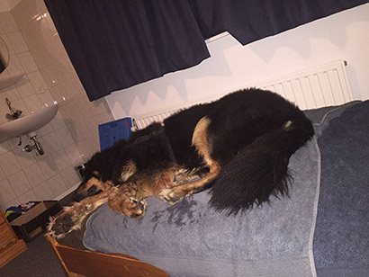 Derzeit macht er Camping mit seinen Menschen