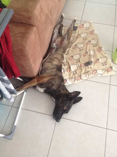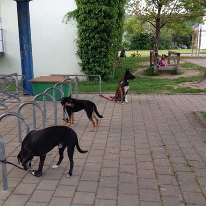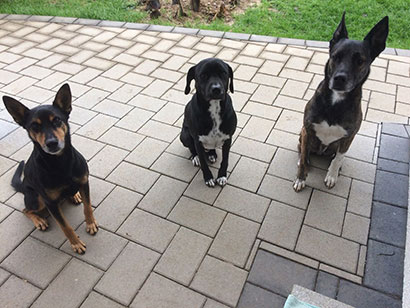 Dingo hat sich gut eingelebt und fühlt sich mit seinen beiden Hundekumpels pudelwohl :)