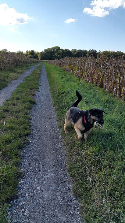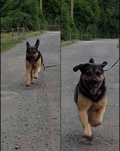 - bin ich ein bisschen tollpatschig und stehe Herrchen und Frauchen manchmal auf die Füße oder schaff es fast nicht ums Eck, weil ich schnell da sein will und kann dann nicht bremsen.