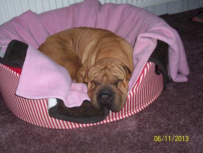 Dona grüßt aus ihrem neuen Zuhause und die Bilder zeigen einen entspannten und glücklichen Shar-Pei