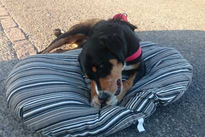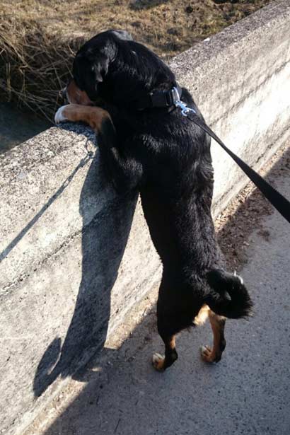 Er geniest den frühling und die warmen temperaturen. Er schwimmt sehr gerne. Ich glaube das ist seine neue leidenschaft :) Seine bellatacken habe ich ihm auch noch nicht abgewöhnen können und die angst vor pferden bleibt. Ansonsten haben wir es aber super mit ihm