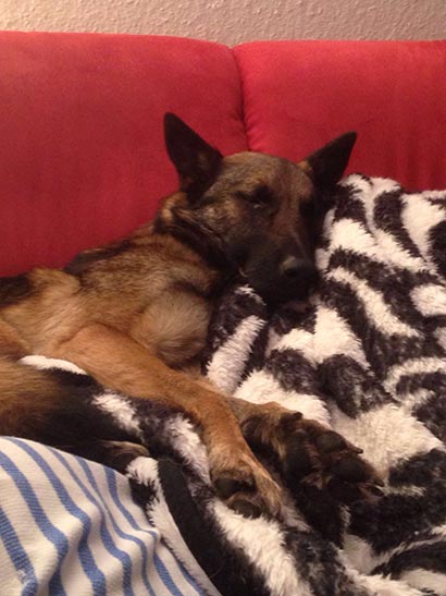 Ein Bild wie er sich gerade in die Couch kuschelt