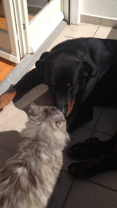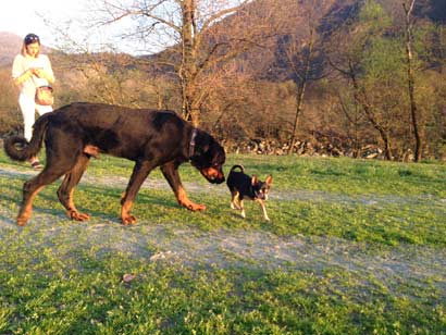 Hallo Michaela Dyx ist ein grosser Bub geworden, wir sind ein eingespieltes team, er hatte leider im letzten Jahr gesundheitliche Schwierigkeiten doch die sind jetzt im griff (er hatte ein Problem mit den timusdruese, die Hormone, und ist auf 64kg angeschwollen, und hat sich wie ein alten Hund verhaltet, als es eine Freundin die Tierarzthelferin ist erkannt hat ist alles mit Pillen wieder in Ordnung gekommen) er wiegt jetzt wieder 50kg, ist wieder aktiv und wir machen wieder lange (1 stunde und mehr) Spaziergänge.