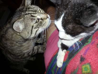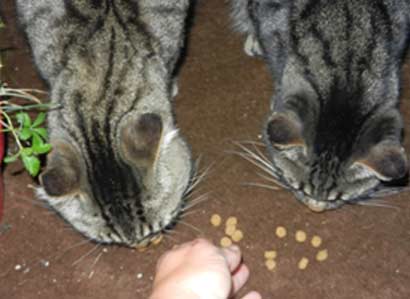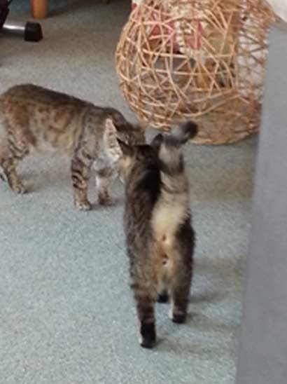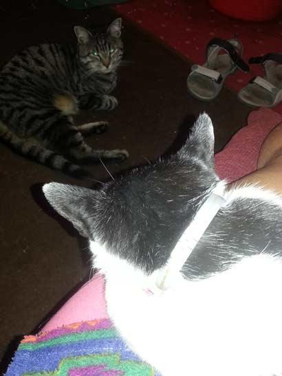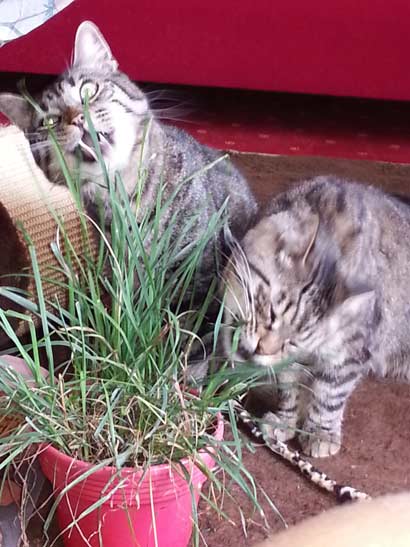 Beide benutzen ihre Katzenklos und futtern ganz ordentlich.