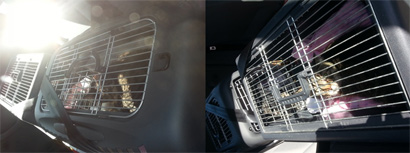 Zaghafter Protest von Filou, in den auch Etienne halbherzig eingestimmt hatte, aber nach 10 Minuten war es so ruhig, dass ich angehlaten habe um nach den beiden zu sehen... sie hatten sich's bequem gemacht und trösteten sich gegenseitig.