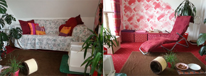 Indoor-Freigang für Filou (Daffy/Even) und Etienne (Eddy/Chaussette)