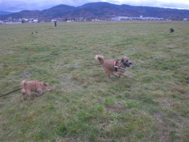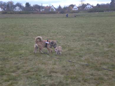 und fand einige Spielkameraden, die trotz Schleppleine mit ihm