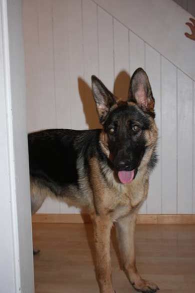 So darf sie jetzt auch mit zum Einkaufen fahren und an die Sitzung da ich sie nicht bei der Praktikantin lassen will. Sie schützt auch sehr stark Norina unsere kleine Tochter, und Damian unseren Sohn. Als meine Freundin Damian umarmte zeigte sie die Zähne und knurrte. Aber wir lernen das alles, auf jeden Fall macht sie uns grossen Spass. Sie merkt sehr schnell wenn jemand unsicher ist. Bei mir, meinem Mann oder den Kindern ist sie aber absolut super.