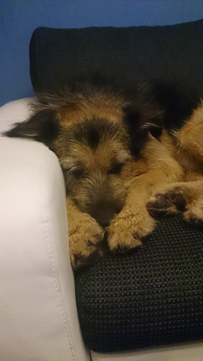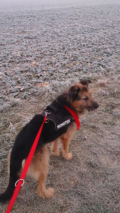 Elliot geht's super. Er ist ein Traumhund. Er ist zwar auch immer noch frech, aber so ist er nun mal. Ein kleiner Sturkopf. Auch Christian ist total begeistert von ihm. Mittlerweile hört er ganz toll auf Sitz. Platz klappt auch gut und er kann auf beiden Seiten Pfote geben. :) Er liebt es auf dem Feld Löcher zu buddeln und er ist ein absoluter Fan vom Auto fahren.