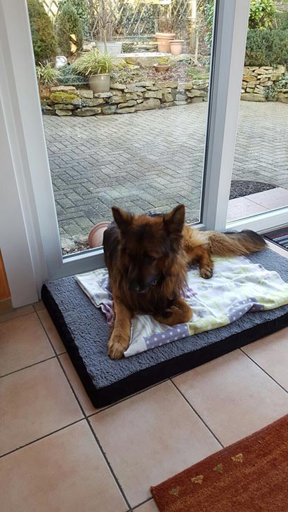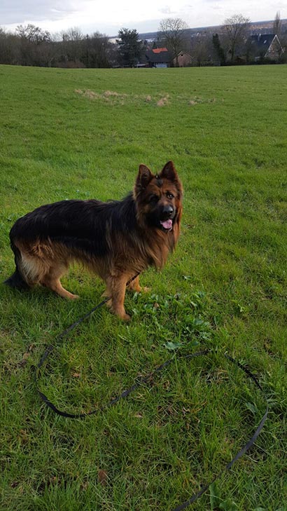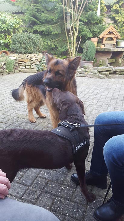 Hallo Suzan , die ersten 2 Wochen hier , war der Elvis hier sehr ruhig und zurückhaltend ,weil er wohl noch nicht wusste ,dass hier sein neues zu Hause ist . er ist mittlerweile ein sehr aufmerksamer Hund geworden , er sagt uns Bescheid wenn was nicht stimmt . Er ist auch noch sehr verspielt ,Bälle und Frisbees liebt er ohne Ende . im Haus benimmt er sich so gut ,wie ich es noch bei keinem Hund erlebt habe , er nörgelt nicht er bettelt nicht und er macht nichts kaputt . wenn wir spazieren gehen , kann ich ihn ohne Leine laufen lassen , wenn ich ihn rufe , ist er sofort da und er geht mir auch nicht von der Seite wenn ich ihm Fuß sage. Radfahrer und andere Spaziergänger werden von ihm nicht beachtet . Andere Hunde sind bei ihm auch kein Problem sie werden begrüßt als wenn man schon lange kennt , er hat die letzten Wochen ca. 15 neue Hunde kennen gelernt und es gab keine Probleme . Bei Kindern habe ich bemerkt ,das er mit denen ganz Vorsichtig ist , als wenn er denkt das sie besonders zerbrechlich sind . das einzigste ,was er nicht mag , da wird gebellt geknurrt und auch gebissen , ist der RASENMÄHER , den mag er nicht ,wenn der im Hof steht ,wird ganz genau auf gepasst das der sich ja nicht bewegt . der Elvis ,ist der liebste und beste Hund den ich je hatte . liebe Grüße Jürgen