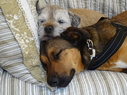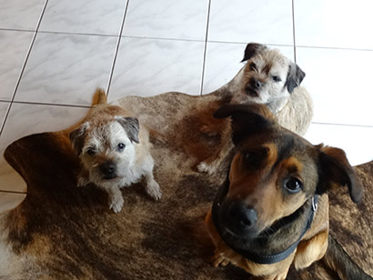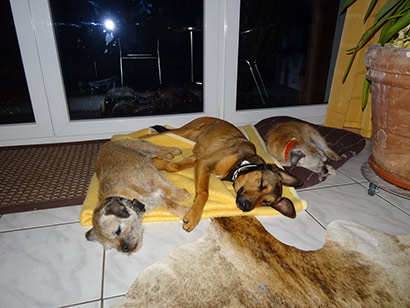 Hallo, wie man unschwer an den Bildern erkennen kann, ist Émeraude glücklich mit ihrem neuen Rudel, und auch unsere Border-Terrier Senioren (beide 13 Jahre) sind wieder "aufgeblüht". Neun Wochen ist sie nun da - unsere Liebe auf den ersten Blick.