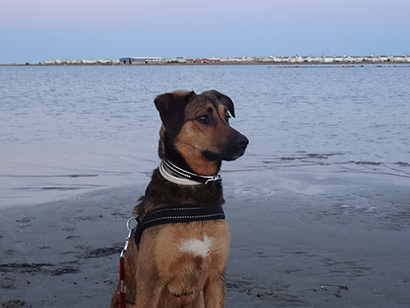 Sie liebt Spaziergänge auf denen ordentlich was los ist, Hundebegegnungen sind kein Problem und auch von "Motzbacken" lässt sie sich nicht beeindrucken. Mittlerweile läuft sie auch schon ohne Leine und lässt sich sogar beim Spielen abrufen.
