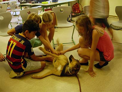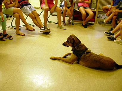 Emmi war letzte Woche mit im Unterricht - sie hat das priiiiiima gemacht, sehr souverän und dabei absolut kinderlieb ;) Die durften nach entsprechender Instruktion alles mit ihr machen. Als allererstes hat sie natürlich gleich das Vesperbrot aus dem einzigen nicht verschlossenem Ranzen apportiert - aber der Junge meinte großzügig, dass sie das nun behalten dürfte ;)
