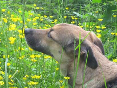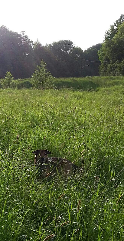 Emma liebt es, durch das hohe Gras zu laufen und sich leider dabei immer entsprechend viele Zecken einzuhandeln.