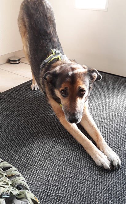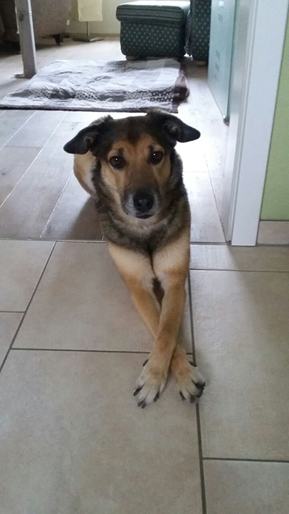 So schnell gibt das M'chen ja nicht auf!! Zum Glück hatte der Besitzer der Hose ein großes Herz und Verständnis für vorgeschädigte Tierschutzhunde und hat sich im Anschluss mit Emmchen angefreundet. Wir sind alle froh, dass Emma bei uns gelandet ist und wir können immer wieder nur staunen, dass sie sich – so, wie vor ihr auch Laika und Chougi – sofort so problemlos in unseren Alltag eingefügt hat.
