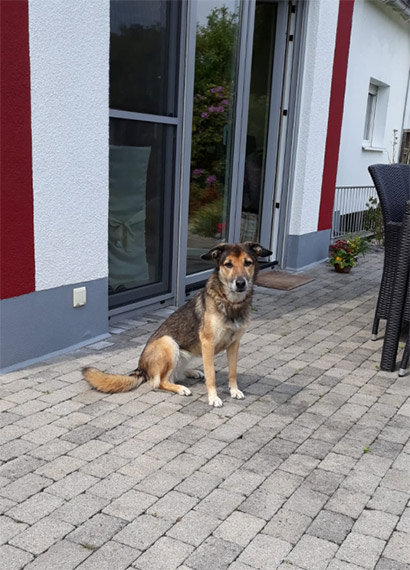 Wenn sie auf ihre geliebten Rüden in der Nachbarschaft trifft, fängt sie schon vorher an zu fiepen und springt ihnen fröhlich um den Hals. Als hätte jemand einen Schalter umgelegt, wurde sie auch immer sicherer und neugieriger, bewacht Haus und Garten und ist natürlich die Queen bei uns Zuhause.