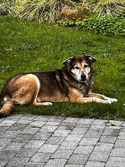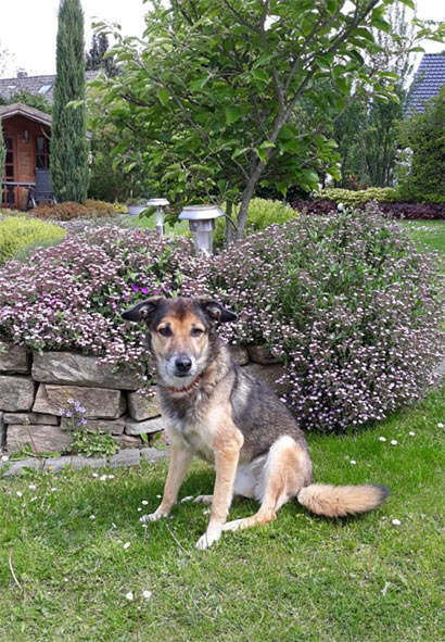 Mir geht es jedenfalls immer noch prima hier. Bin ein suuuper Wachhund, sagt Herrchen und passe auf Haus, Garten und Menschen auf. Meistens bin ich ja ganz relaxt und lasse mich liebend gern kraulen, aber wenn es jemand wagt, zu nah an den Gartenzaun zu kommen, dann bin ich ganz entsetzt und rege mich ein wenig auf. Hihi, die meisten nehmen mich dann auch sehr ernst und halten lieber Abstand. Oft erledige ich das Ganze aber auch von der Couch aus, weil ich ja weiß, dass die alle Angst bekommen und wieder abhauen, wenn ich mit meiner tiiieefen Stimme loslege. Meine Menschen sagen mir dann oft, dass alles i.O. ist und dann glaube ich das auch meistens und gehe auf meine Decke zurück – aber manchmal grummel ich dann auch noch ein bisschen weiter in mich hinein. Aufpassen macht nämlich Spaß!!