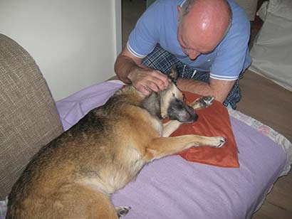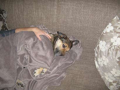 Leider konnten wir schon wieder nicht teilnehmen, aber die Bilder vom Sommerfest sind sehr schön. Wir freuen uns auch immer, wenn wir Bilder und Geschichten von dem einen oder anderen Hund lesen können :-) Unserem kleinen Emmchen geht es wieder gut. Im Mai/Juni hatte sie einen kleinen Rückfall und wurde immer schlapper. Jeweils 1 Nieren-, Leber- und Bauchspeicheldrüsenwert waren schlecht. Aber jetzt sind die Werte wieder fast i.O. und das kleine Häschen springt wieder fröhlich und lustig umher. Wenn sie ihre Rennattacken bekommt, dann sieht sie so verschmitzt aus, wie ein Lausbub und strahlt über das ganze Gesicht, dass einem das Herz aufgeht. Ein kleiner Dieb steckt auch nach wie vor noch in ihr und wenn wir mal vergessen Essbares weit aus ihrer Reichweite zu legen und sie ist alleine im Raum – schwups, schon ist da nichts Essbares mehr und Emmchen setzt ihre Unschuldsmiene auf. Zum Glück frisst sie die Alufolie nicht mit und teilt diese vorher genauestens ab. Oma und Emmas Lieblingsbeschäftigung ist das Kraulen.