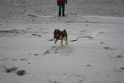 Wir konnten Sie nicht "überreden", ins Wasser zu gehen. Nur die Algen am Strand fand sie klasse - da konnte sie sich so richtig toll wälzen! Sie war wieder sehr verunsichert und wenn nachts jemand aufstand, dann hat sie vor lauter Schreck einen Megaalarm ausgelöst ;-)