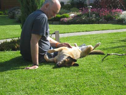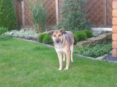 Die Trainerin meinte gestern, dass Emma sehr reserviert wäre und nicht so fröhlich herum hüpft - ob das immer so wäre. Das hat mich schon ein wenig nachdenklich gestimmt. Ja, wenn wir losgehen liegt sie vor der Tür, lässt sich das Geschirr im LIEGEN!!! anziehen und ist gar nicht so freudig aufgeregt, wie unsere ersten beiden. Draußen schnüffelt sie viel und geht sehr brav an der Leine. Manchmal allerdings kommt Freude bei ihr auf - wenn sie durchs hohe Gras streunern und springen darf (leider immer mit erfolgreicher Zeckenjagd :-( )od. ich mit ihr auf einer Wiese renne. Dann hat sie ein Lachen im Gesicht und rast wie irre herum, nimmt sich dann aber immer wieder zurück - so, als würde sie sich erinnern und denken: huch, das darf ich ja gar nicht. . Sehr gerne tobt sie auch abends - nach dem Fressen!!! im Garten herum od. fängt an sich zu wälzen. Oh no - da bekommt Frauchen dann regelmäßig ein kleine Herzattacke und hat sofort Angst vor einer Magendrehung!! Deshalb lassen wir dann nach dem Fressen jetzt immer lieber die Tür zum Garten zu.