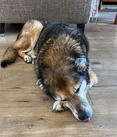 Hallo Frau Herr, heute werde ich schon 10 Jahre alt und würde meinen Gassigängern gerne ein Stückchen vom Geburtstagskuchen abgeben!! Leider ist der Weg zu weit. Da muss nun das Foto reichen.