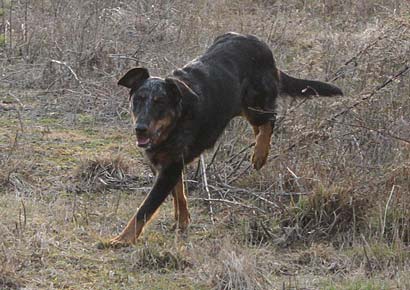 Aber vor dem Postboten mit seiner lustigen Uniform habe ich keine Angst mehr. Mein neuer Kumpel Jacky ist ja auch immer bei mir und mit dem kann ich so wunderbar rumtoben oder kuscheln. Inzwischen machen wir schon jedes Mal ein Wettessen wer zuerst den Napf leer hat, manchmal gewinne ich auch und kann ihm noch ein paar Brocken abluchsen. Silvester war na nicht so prickelnd, diese Knallerei hat mich schier in den Wahnsinn getrieben, aber ich habe dann noch einen sicheren Platz gefunden: bei Frauchen unter der Bettdecke. Wurde zwar ganz schön warm aber ich fand es gemütlich, schade nur dass es eine Ausnahme war. Aber wenn die alle fest schlafen schleiche ich mich noch manchmal ins Bett und rolle mich bei den Füßen zusammen, das merken die kaum! Die ersten 5 Tage durfte ich nur an der Rollleine laufen und hatte einen Radius von 5m, dann kam endlich die Schleppleine und ich hatte 10m zum Austoben und Rumtollen. Ich liebe diese langen Spatziergänge von 4-6 km, seit dem weis ich auch wofür ich meine Beine habe!!!