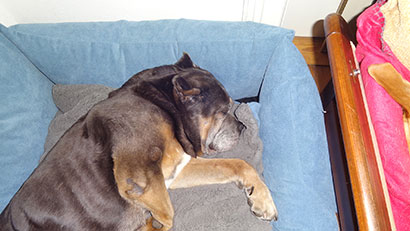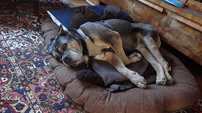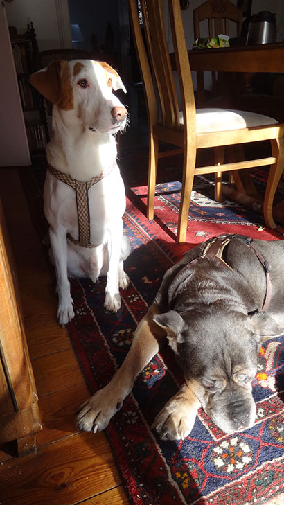 Ewa geht es gut. Sie hat zugenommen und fühlt sich bei uns sehr wohl. Sie begrüßt mich freudig, wenn ich von der Arbeit komme. Die Ferien waren schön und Ewa und Fridolin (Texas) haben mich begleitet.