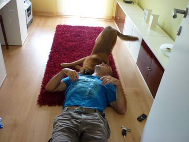 Ich war im Herbst bei Jan Nijboer und seither hat sich vieles zum Positiven verändert. Problem bei Falco (jetzt Farco) war/ist, dass er mit sehr starkem Druck "erzogen" worden ist. Er funktionierte zwar wie eine 1, dafür stand er bei jedem Kommando unter Stress und hat gar keine Kapazitäten mitzudenken oder aus Freude mitzumachen und war steht's auf einem hohen Stresslevel.